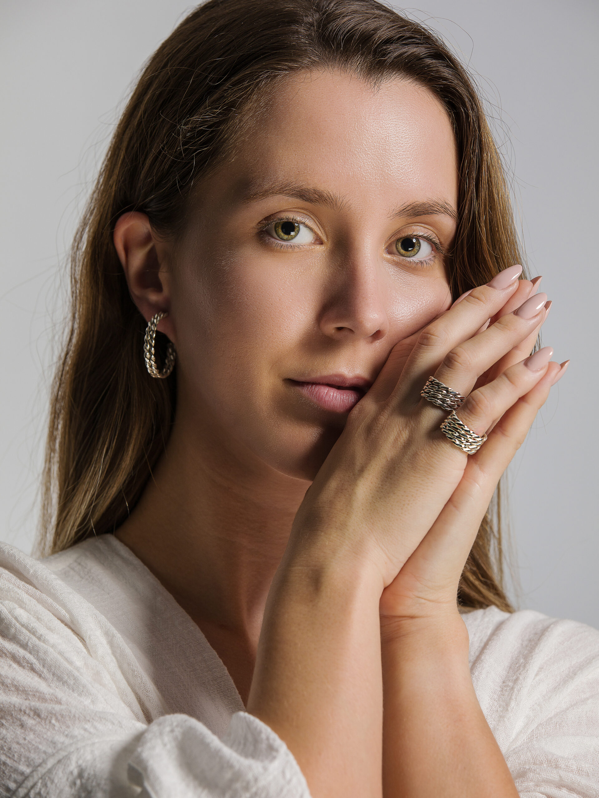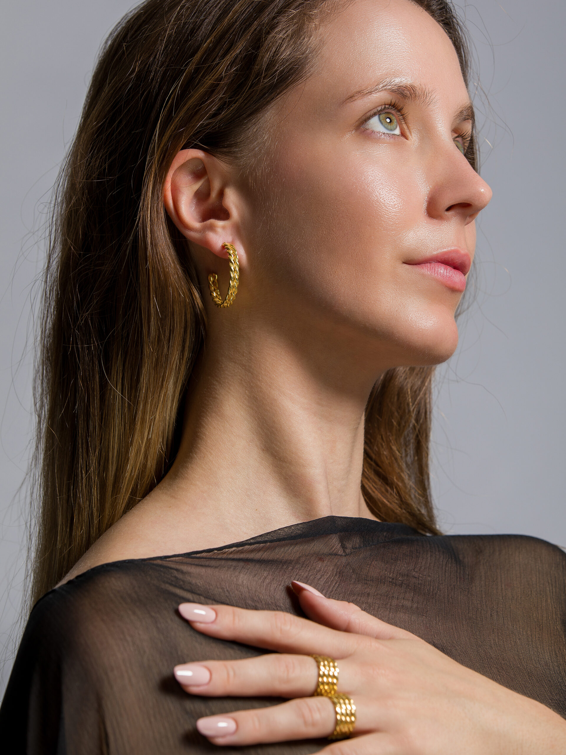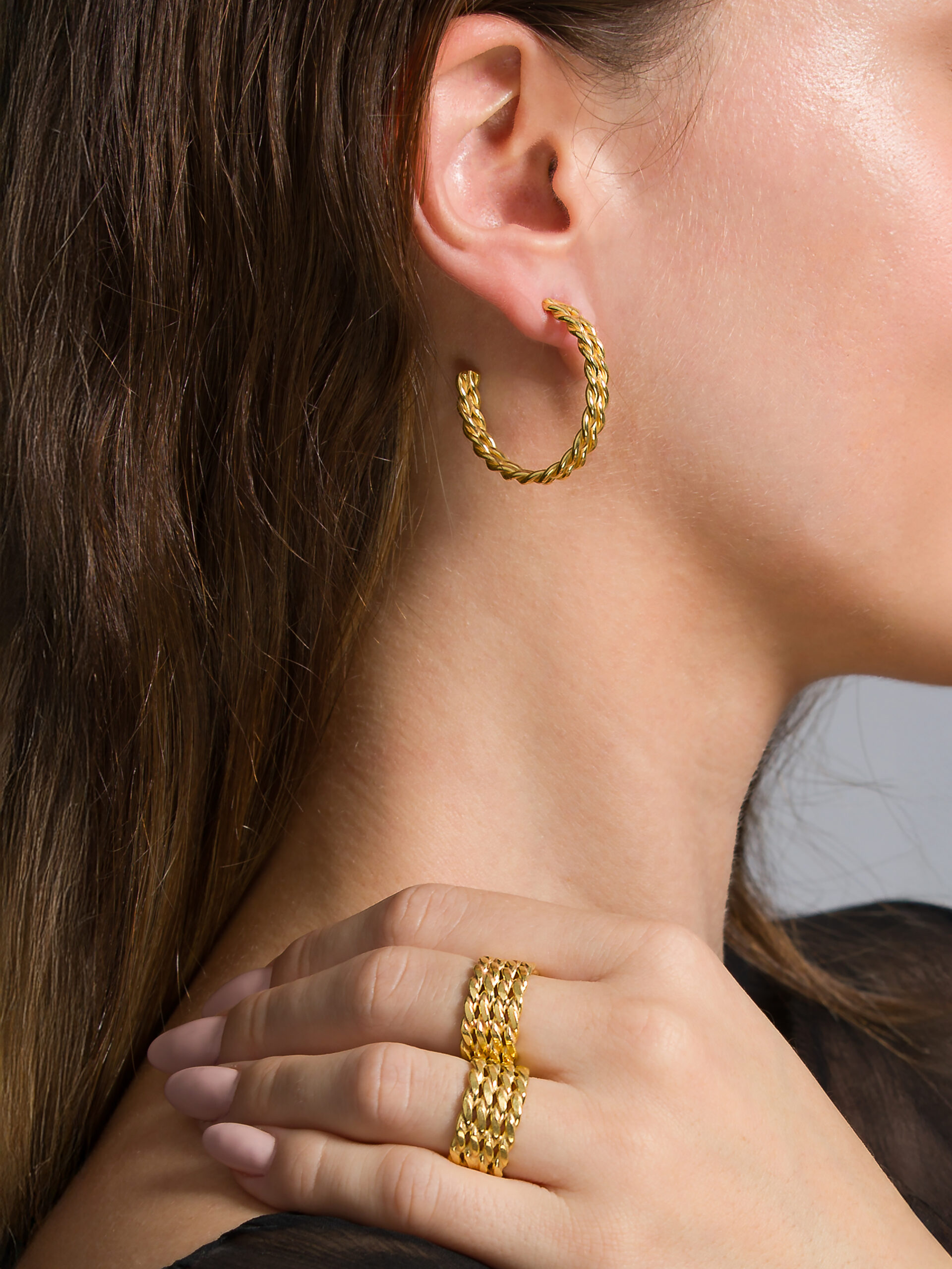 Los pendientes PILAR son la versión maxi de este modelo y combinan con el anillo Carla.